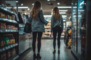 They entered. Yvonne grabbed a basket again of course she did and without hesitation, went straight to the fridge like she had muscle memory.